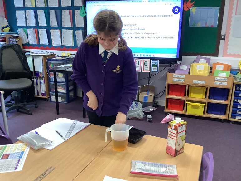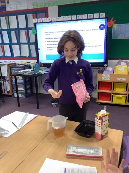 Our Year 6 children have been exploring the fascinating components of blood through a fun and memorable hands-on activity. By creating a “blood smoothie” using apple juice, raspberries, marshmallows and sprinkles, children learned how blood is made up of plasma, red blood cells, white blood cells and platelets. Each ingredient represented a different component, helping the children visualise how blood works inside the body.