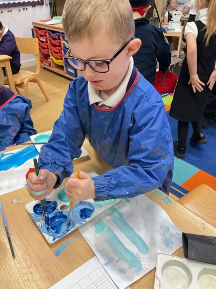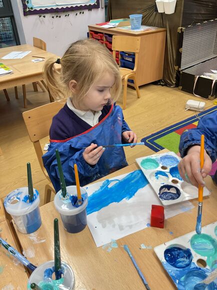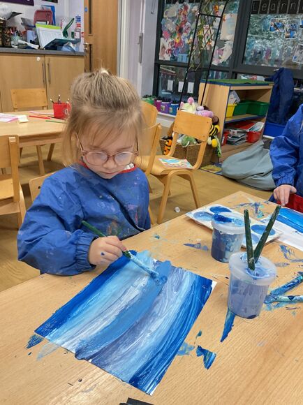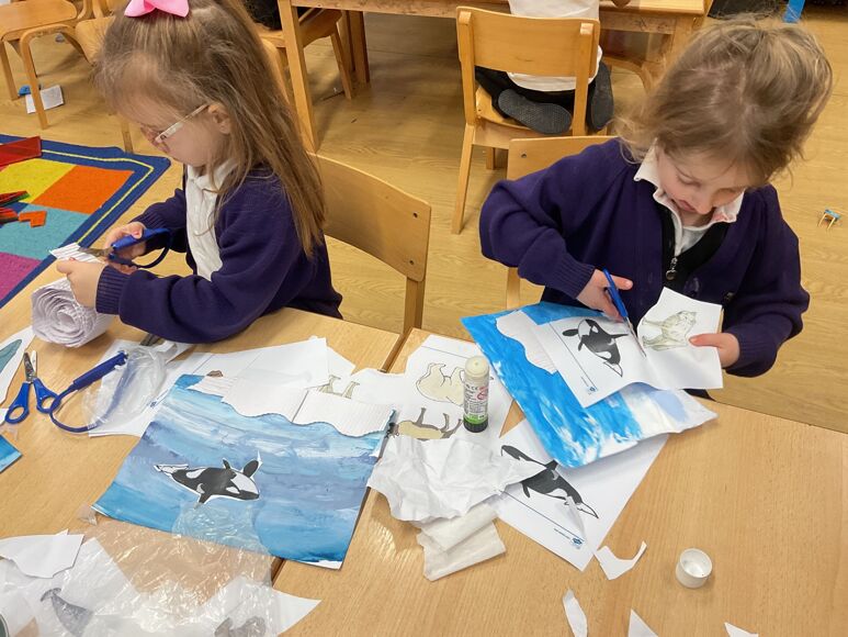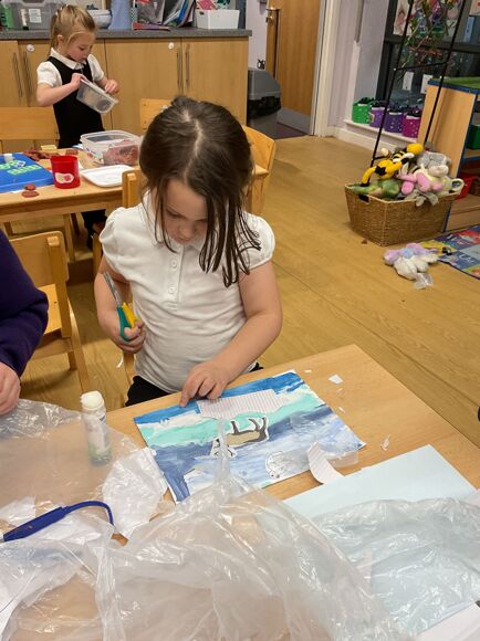 Fledglings have been drawing inspiration from the Arctic to create some truly impressive artwork. The children explored mixing ‘cold’ colours to paint stunning icy landscapes, before bringing their scenes to life with collage materials, carefully adding icebergs, snow and Arctic animals.